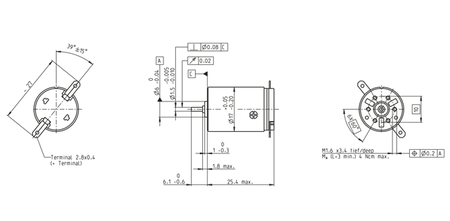 最大ラジアル荷重 | 1.4 N、フランジから 5 mm |